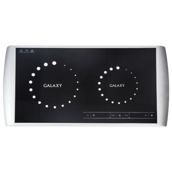 Модель Galaxy GL3056 оснащена двумя конфорками с диаметром 12 и 22 см. Предусматривается наличие чувствительного сенсорного управления и удобного дисплея для отслеживания качества работы.