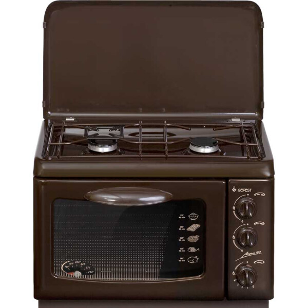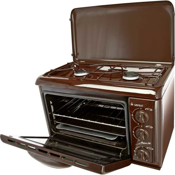 Нижняя часть плитки GEFEST 100 К19 представляет собой газовый духовой шкаф с решеткой и прямоугольным противнем. Двойное стекло дверцы не пропускает тепло и защищает от ожогов.