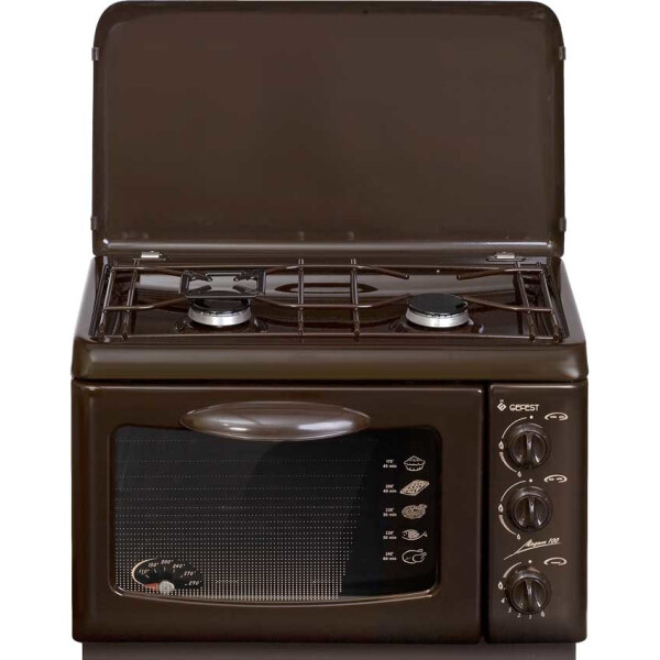 Газовая плитка GEFEST 100 К19 выполнена в компактном коричневом корпусе размерами 55x40x40 см. На верхней панели содержатся две конфорки, что позволяет готовить супы, варить, жарить овощи, используя кастрюли и сковороды. Для управления интенсивностью пламени фронтальная сторона корпуса содержит две поворотные ручки. Фиксированное положение Малое пламя обеспечивает легкую настройку конфорок для режима тушения. Панель выполнена из эмалированной стали, устойчива к царапинам и легко очищается от загрязнений. Она защищена чугунными фигурными решетками.