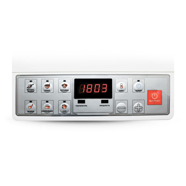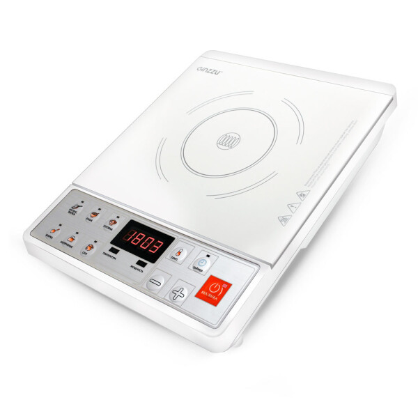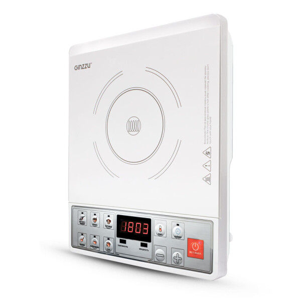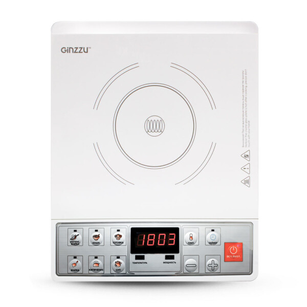 Настольная индукционная плита Ginzzu HCI-165 с дисплеем выполнена из закаленного стекла с псевдосенсорным управлением. Она имеет 5 программ, таймер и защиту от перегрева. Мощность конфорки равняется 2000 Вт.