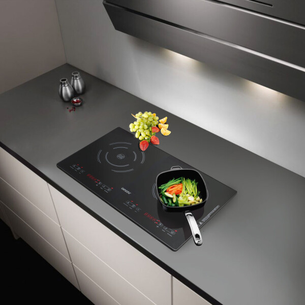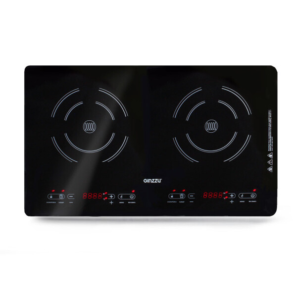 Электрическая плитка Ginzzu HCI-243 в черном цвете имеет сенсорную панель управления с таймером, которая позволяет настроить температурный режим и не требует контроля.