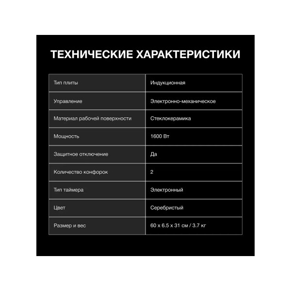 Невероятно стильная плита электрическая Hyundai HYC-0103 обязательно понравится домохозяйке. В представленной модели есть необходимые функции, чтобы быстро и безопасно приготавливать, греть еду. Мощность 2 конфорок составляет 1300 и 1600 Вт, что вполне достаточно для готовки первых, вторых блюд. Электронный таймер позволит настроить режим функционирования, а автоматическое отключение сработает, когда устройство будет использоваться без нагрузки.