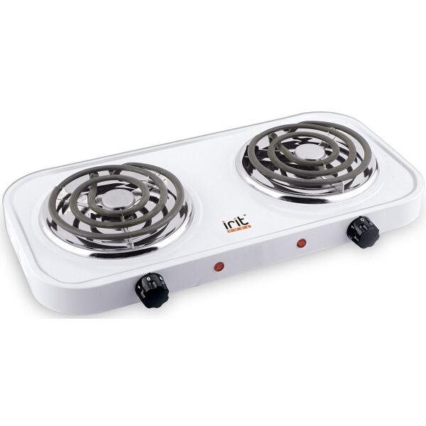 Белая электрическая плитка Irit IR-8120 с механическим управлением оснащена двумя поворотными переключателями и индикатором работы. Плитка имеет две конфорки, позволяющие готовить сразу несколько блюд. Максимальная потребляемая мощность Irit IR-8120 составляет 2000 Вт.