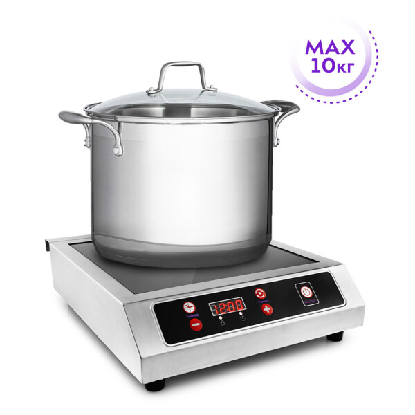 Плитка способна развивать свой нагрев до высочайших температур: её мощностные режимы регулируются от 120 до 3200 Вт! В панель управления также встроена функция таймера до 24 часов. Принцип работы индукционной плиты практически исключает вероятность получения ожогов, возникновения огня, дыма и поскольку рабочая поверхность почти не нагревается во время готовки. Для индукционной плитки подходит посуда с дном из ферромагнитных материалов: стальная, чугунная, эмалированная, посуда из нержавеющей стали, а также любая другая, предназначенная для индукционного нагрева. Плита выдерживает вес не более 10 кг.
