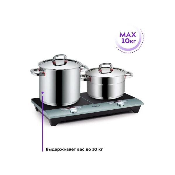 Для инфракрасной плиты Kitfort KT-155 подходит практическая любая посуда, однако рекомендуется использовать посуду с плоским дном. Плита выдерживает вес не более 10 кг.