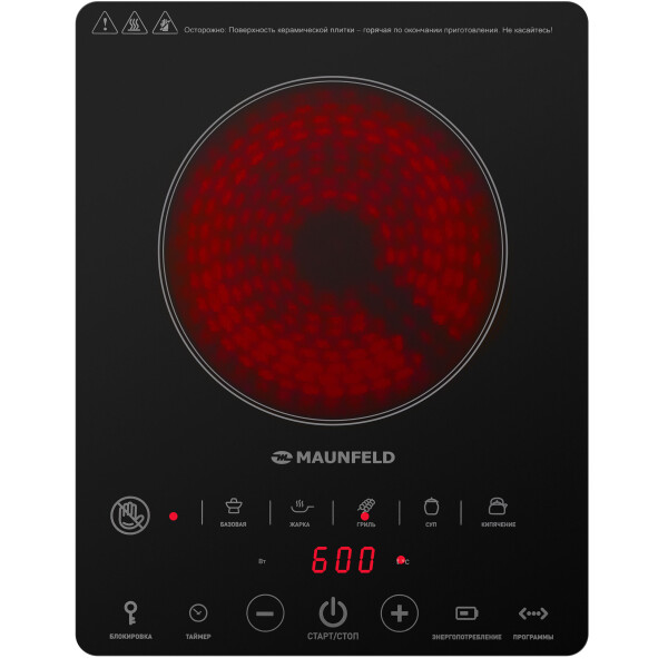 Встраиваемая электрическая варочная панель Maunfeld EVCE 291-BK. Зона нагрева оборудована современным нагревательным элементом Hi-Light, который отличается высокой скоростью нагрева, энергоэффективностью и надежностью. Функция таймер поможет установить нужное время готовки и по окончании заданного времени зона нагрева отключается. Предусмотрено пять режимов приготовления: базовый, жарка, гриль, суп, кипячение.