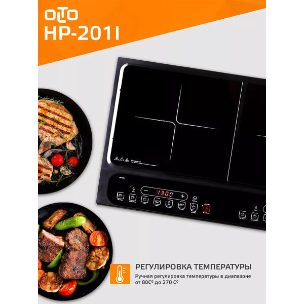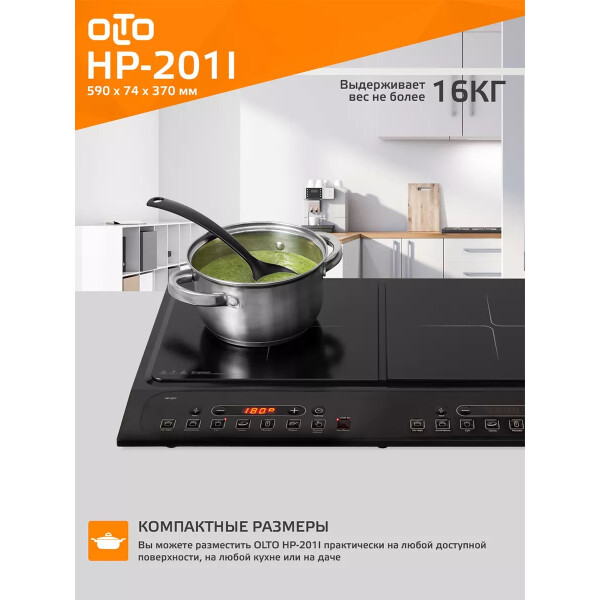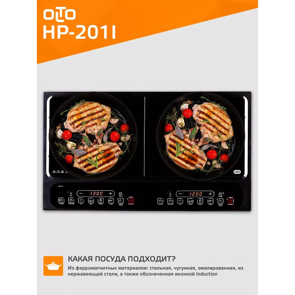 Индукционная плита OLTO HP-201I практична и экономична. Мощностные режимы регулируются от 200 до 2000 Вт. Данная модель плитки имеет несколько режимов работы с предварительно заданными параметрами температуры и мощности нагрева. Для таких режимов подобраны оптимальные значения нагрева. Тем не менее, три режима работы имеют возможность ручного регулирования параметров температуры или мощности. При ручном регулировании можно выбирать из 8 режимов мощности или температуры.