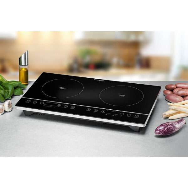 Индукция - это современный и эффективный способ приготовления! Высокая эффективность этой технологии экономит энергию, время и деньги. Тепло вырабатывается непосредственно в нижней части кастрюли и, таким образом, доступно так же быстро, как и в газовой плите, но намного безопаснее. Сама зона приготовления поглощает только отходящее тепло кастрюли. Независимо от того, используете ли вы его в качестве дополнительной зоны для приготовления пищи или в качестве мобильной зоны для приготовления пищи для отдельной квартиры, дома для отдыха или офиса - плиты для индукционной варки можно использовать везде быстро и гибко. Мощность может быть выбрана по желанию через 10 уровней мощности или через предварительный выбор температуры (от 60 ° C до 240 ° C). Сенсорные сенсоры, светодиодный дисплей и 180-минутный таймер обеспечивают очень простую эксплуатацию. Функция автоматического отключения с тональным сигналом и индикатором остаточного тепла обеспечивают дополнительную безопасность во время работы.