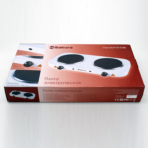 Электроплита «Sakura ПЭ-04В» воплотит ваши кулинарные фантазии быстрым и удобным способом благодаря независимой работе двух конфорок. Регулируемый термостат позволит контролировать процесс приготовления. Антипригарное покрытие корпуса предотвратит повреждение изделия при длительном непрерывном использовании. Световой индикатор поможет не оставить плиту включённой и предупредит об опасности прикосновения к горячим конфоркам. Прорезиненные ножки не допускают случайного смещения и падения устройства.
