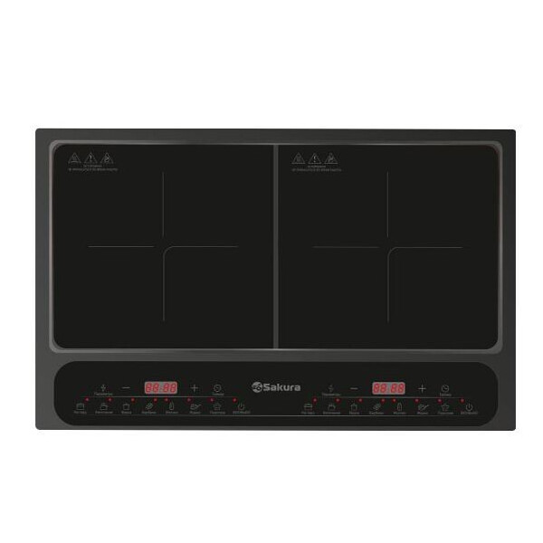 Плита электрическая с индукционным нагревательным элементом, мощность 2000+1500 Вт, индукционный нагревательный элемент, LED-дисплей, корпус из закаленного стекла, индикатор работы, регулировка мощности, функция таймера, отсрочка старта, автоотключение. Подходит для посуды диаметром от 12 до 26 см. Макс.нагрузка: не более 8 кг на каждую конфорку.