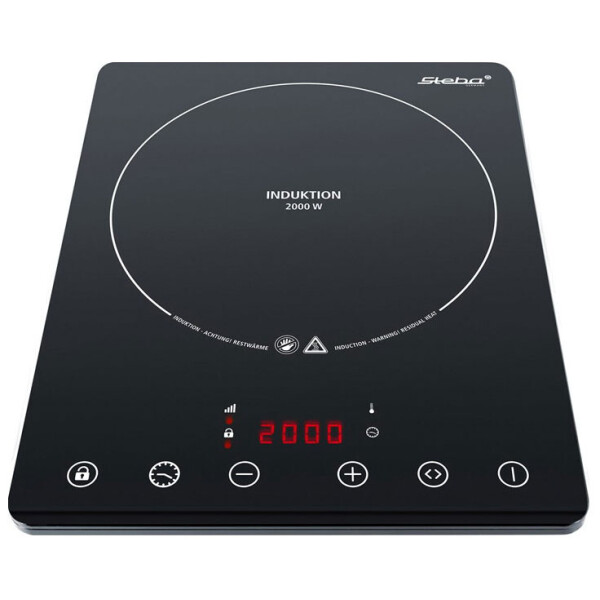 Ультра-тонкая индукционная плита Steba IK 65 Slim. Керамическая поверхность. Варочная поверхность: диаметр 23 см. Мобильное использования. Сенсорное управление. Контроль температуры 60 - 240С. 8 режимов мощности 300 - 2000 Вт. Функция Таймер до 180 минут. Автоматическое распознавание посуды. Автоотключение при отсутствии посуды. Блокировка от детей. Легкая чистка. Мощность: 2000 Вт.