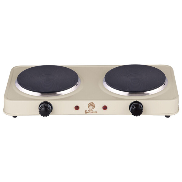 Электрическая плита ВАСИЛИСА ВА-903 выполнена в бежевом цвете. Прибор имеет мощность 2 кВт. Две конфорки включаются с помощью поворотных переключателей.