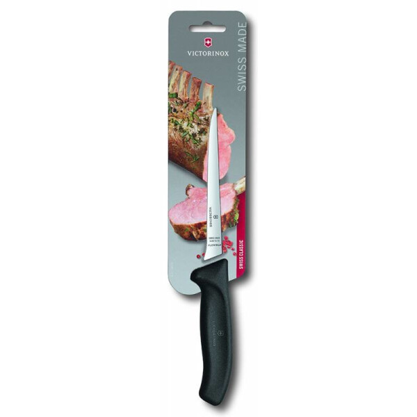 Нож обвалочный с гибким лезвием из нержавеющей стали 15 см. Рукоять из термопластика TPE чёрного цвета. Можно мыть в посудомоечной машине.
