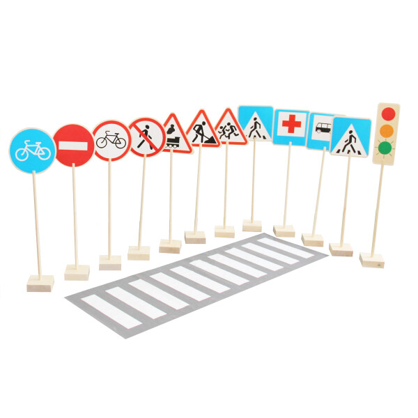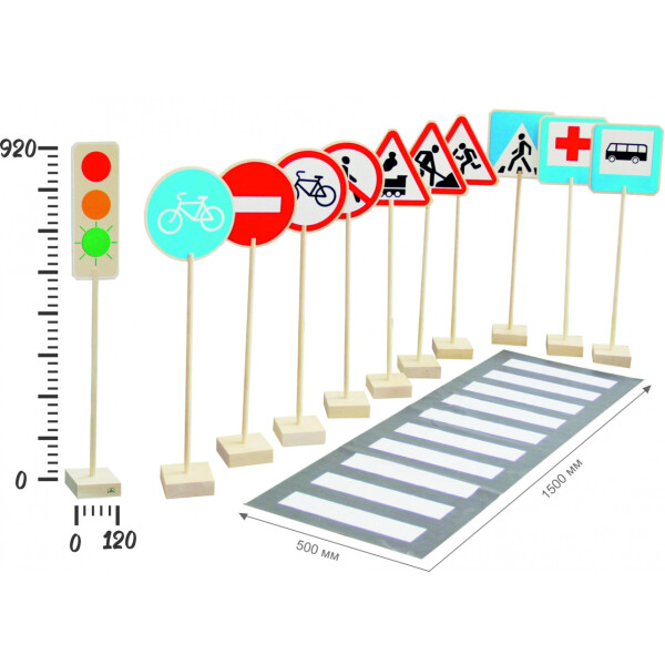 Напольный набор «Знаки дорожного движения» — обучающая развивающая игра детей. Она расскажет малышам о правилах поведения на дороге, поможет обыграть различные ситуации, которые могут возникнуть с ними на улице и проезжей части. Игровые материалы научат маленьких пешеходов безопасности и познакомят с основными дорожными знаками. Помимо прочего, игра развивает память.