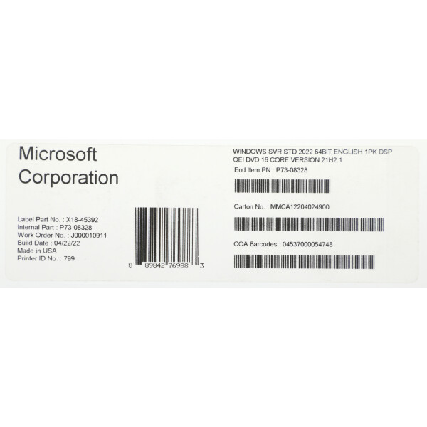 Операционная система Microsoft Windows Svr Std 2022 64bit (P73-08328)