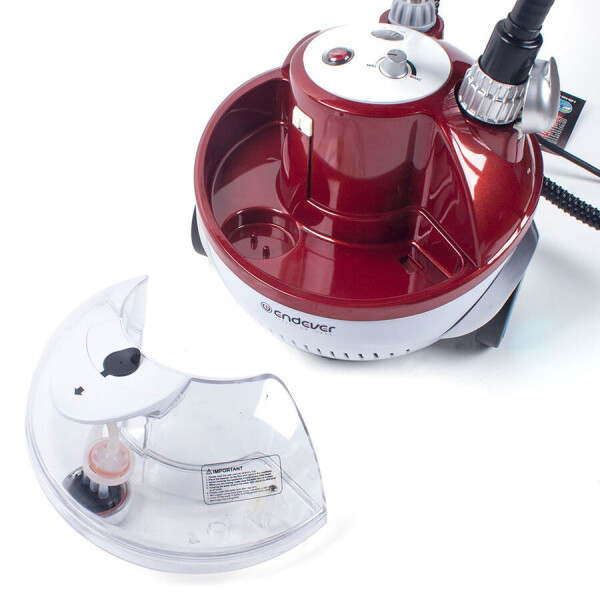 Отпариватель Endever Odyssey Q-9 напольного типа представлен в элегантном дизайне и имеет красную расцветку с элементами черного, белого и серебристого цветов. Оборудование действует с мощностью 2500 Вт и дополняется удобным регулятором мощности. Предусматривается наличие съемного бака для воды на 2.3 л.