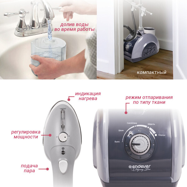 Универсальный отпариватель Endever Odyssey Q-911 предназначен для качественной глажки и чистки вещей из различных материалов. С его помощью, не прилагая особых усилий, можно отгладить шелк, кружева или вещи из кашемира. Кроме этого, пароочистителем удобно проводить уборку: пар удаляет пятна, неприятные запахи и вредных бактерий.