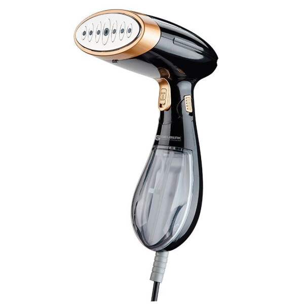 Подходит для всех типов тканей. Потребляемая мощность 1500 Вт. Объем резервуара для воды 120 мл. Съемный резервуар. Складная ручка. Готовность к работе через 30 сек. Сопло из нержавеющей стали. Длина сетевого шнура 160 cm.