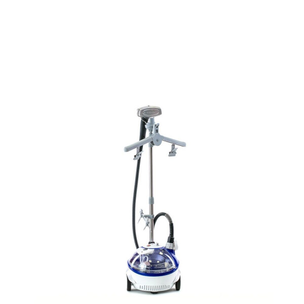 Новый отпариватель реализует функции вертикального отпаривания одежды. Обтекаемая округлая форма корпуса, колеса для передвижения в помещении, прозрачный бак для воды с функцией самозакачки. Паровой утюжок изготовлен из нержавеющей стали. Пар производится непрерывно и подается под давлением в 3,5 Бара.