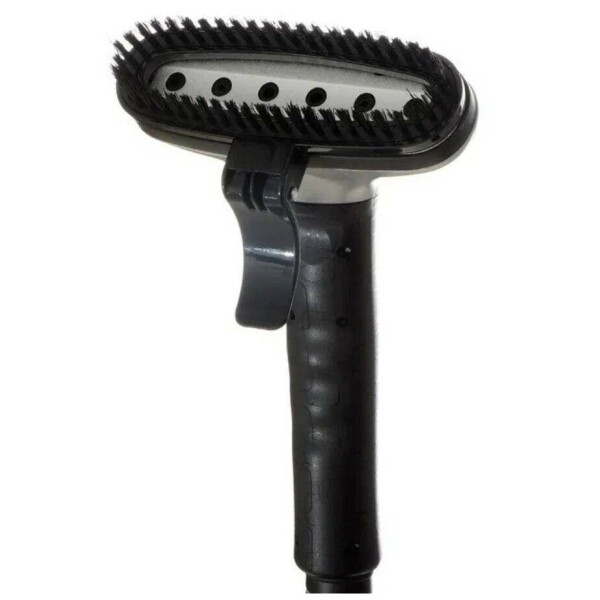 В комплекте есть зажимы для брюк и юбок.Температуру нагрева можно регулировать в двух режимах (максимум +98С). После подключения к сети устройство будет готово к применению через 35 секунд. Подошва утюга сделана из металла. Пар интенсивностью 40 г в минуту подается через гибкий шланг длиной 1,4 м.