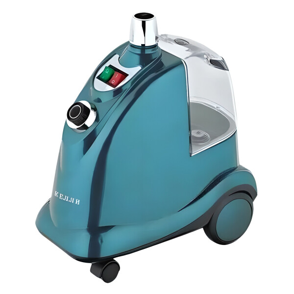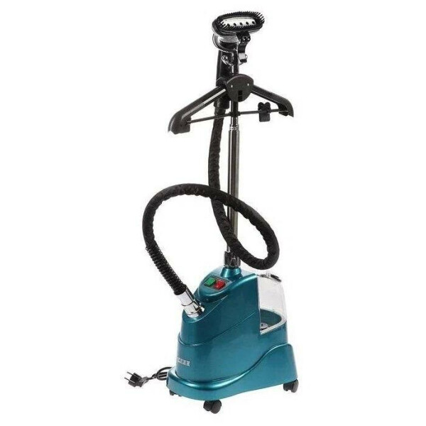 Kelli КL-9 напольный отпариватель в корпусе красного цвета, оборудованный прозрачным резервуаром для воды емкостью 3 л. Конструкция снабжена двумя большими и двумя малыми колесами, что значительно облегчает перемещение. Для размещения одежды используются регулируемая по высоте стойка и вешалка.