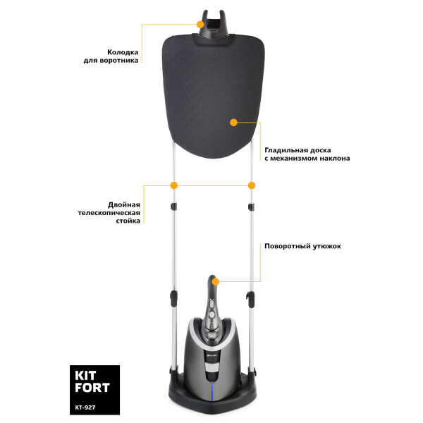 Вертикальный отпариватель Kitfort KT-927 — серьёзный конкурент паровых утюгов: он позволяет чрезвычайно быстро прогладить любые вещи и изделия из текстиля. Это тщательный уход за вещами, не отнимающий много времени. Отпариватель позволяет обрабатывать одежду и ткани, расположенные как горизонтально, так и вертикально. Одежда при этом может висеть на вешалке отпаривателя или на обычной вешалке, на сушилке для белья или на верёвке. При этом вы не только разгладите складки, но и освежите вещи.