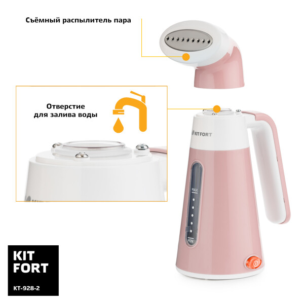 Отпариватель ручной Kitfort KT-928 - серьезный конкурент паровых утюгов: он позволяет чрезвычайно быстро прогладить любые вещи и изделия из текстиля. Это тщательный уход за вещами, не отнимающий много времени. В отличие от утюгов, которыми гладят ткани и одежду, расположенные горизонтально, отпаривателем обычно обрабатывают одежду и ткани, расположенные вертикально. Никаких дополнительных приспособлений, вроде доски для глажки, здесь не требуется. Одежда при этом может висеть на вешалке, на сушилке для белья или на веревке.