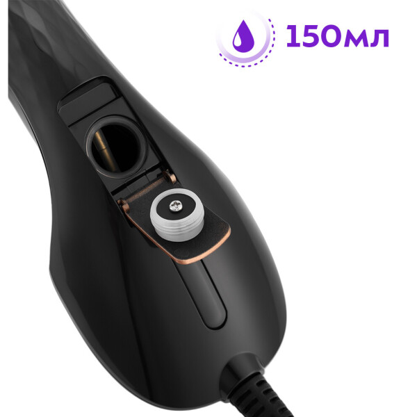 Резервуар для воды у отпаривателя встроенный. Вода из резервуара подаётся в бойлер помпой (водяным насосом). Использование помпы позволяет точно дозировать количество подаваемой в бойлер воды и получать устойчивую подачу пара.