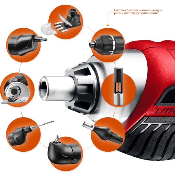 Инструмент для заворачивания/отворачивания крепежа с Li-Ion аккумулятором - незаменимый помощник в быту. Компактный инструмент с системой быстросъемных насадок отличается мощностью и продуманным функционалом, а прилагаемый набор бит позволит сразу же приступить к работе.