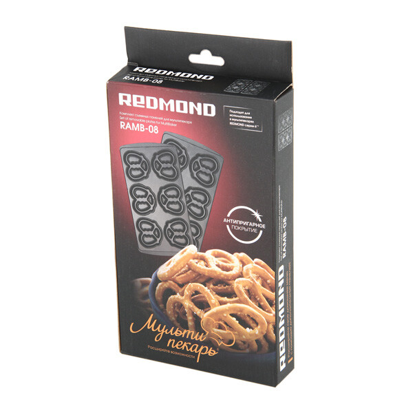 Универсальные съемные панели RAMB-08 для любого мультипекаря Redmond. Позволят приготовить миниатюрные сладкие или соленые крендели, которые станут отличным десертом или легкой закуской.