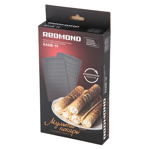 Универсальные съемные панели для любого мультипекаря Redmond. С их помощью легко сделать удлиненные тонкие вафли и начинить их взбитыми сливками, джемом, кондитерским кремом или другой начинкой на ваш выбор.