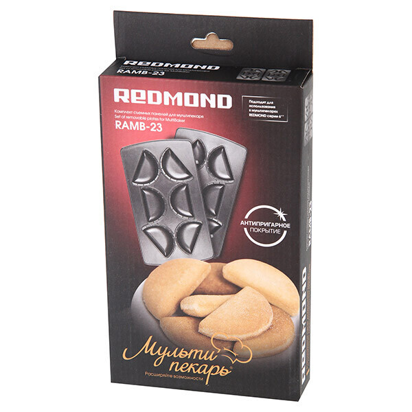 Универсальные съемные панели RAMB-23 для любого мультипекаря Redmond. Позволят приготовить печенье или пряники полукруглой формы. Панели изготовлены из металла с антипригарным покрытием – они долговечны и легки в уходе, а готовить на них можно без масла. Удобные ручки позволят с удобством снимать панели с корпуса Мультипекаря.