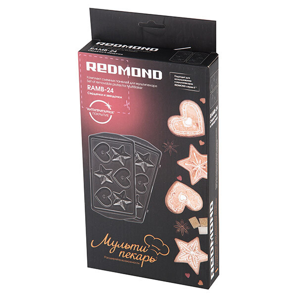 Универсальные съемные панели для любого Мультипекаря REDMOND серии 6. Позволят вам приготовить натуральную выпечку без консервантов в форме звезд и сердец, чтобы потом расписать ее глазурью или украсить любым другим способом по вашему вкусу.