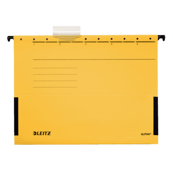 Изготовлена из 100%-переработанного картона плотностью 250 г/м2. Боковые ограничители. Комплектуется табулятором. Для хранения отдельных листков и документов формата А4 с ограничителями для предотвращения выпадения документов сбоку. Сменные ярлычки для маркировки могут устанавливаться по выбору на передней или задней кромке папки, крепятся в 10 положениях, легко передвигаются, прочно держатся.