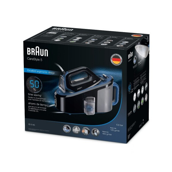 Парогенератор Braun IS5145BK позволит легко и без лишних усилий поддерживать свою одежду в идеальном, парадном состоянии. Ведь встроенная специальная подошва Eloxal FreeGlide 3D гарантирует идеальное скольжение утюга на 360 градусов, что позволит вам гладить ещё быстрее, она в 2 раза более прочная, чем нержавеющая сталь, что гарантирует, что Braun IS5145BK прослужит вам очень долго.