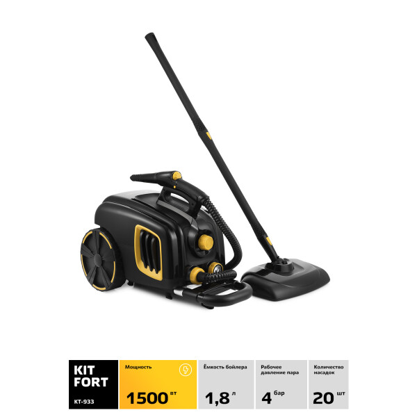 Пароочиститель Kitfort KT-933 - многофункциональный аппарат, способный заменить паровую швабру, дезинфектор, и отпариватель для тканей. Используя силу горячего пара, пароочиститель великолепно очищает поверхности и обеспечивает деликатную глажку вещей. При этом прибор очень удобен в использовании, и работа с ним не требует от пользователя каких-то особых навыков и умений.