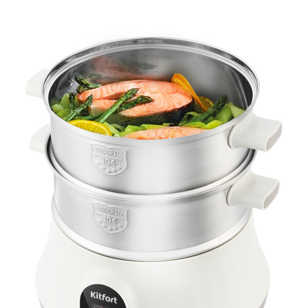 Пароварка Kitfort KT-2035 приготовит вам полезные и питательные блюда, сохранив все полезные витамины и микроэлементы, содержащиеся в продуктах. Продукты, приготовленные на пару, получаются нежные, мягкие и сочные.