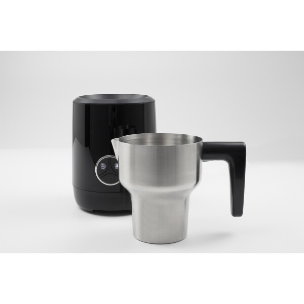 Панель управления пеновзбивателя состоит из трёх клавиш с понятными пиктограммами и ненавязчивой светодиодной подсветкой. Просто налейте необходимое количество молока и нажмите нужную кнопку для того, чтобы получить тёплую или холодную молочную пену для напитков.