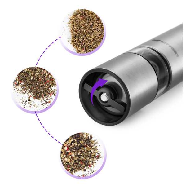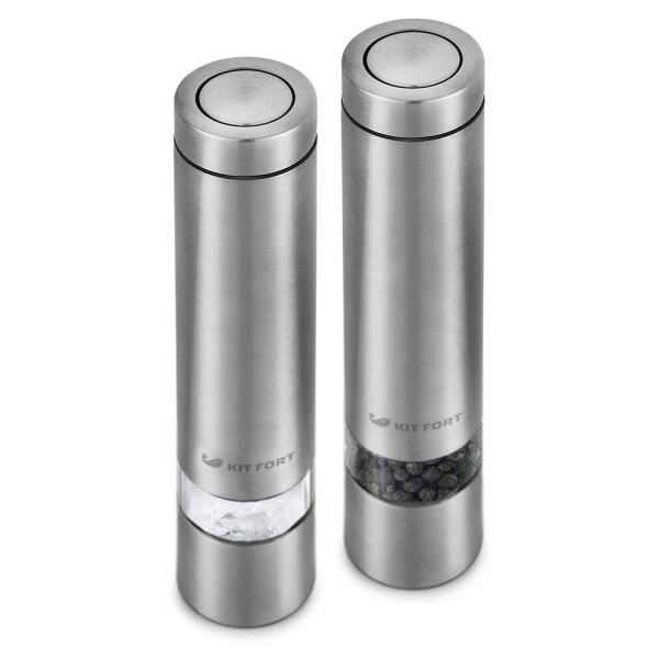 Набор мельниц Kitfort KT-2028 измельчает перец-горошек, соль и другие специи. Нет нужды молоть специи впрок. Мельница одновременно мелет и дозирует. Поместите её над блюдом и просто нажмите кнопку. Степень помола легко регулируется винтом. Регулируйте степень измельчения приправы для каждого блюда индивидуально. Мельница удобно лежит в руке, включается одной кнопкой и работает от 4 батареек типа АА, которых хватает на долгое время.