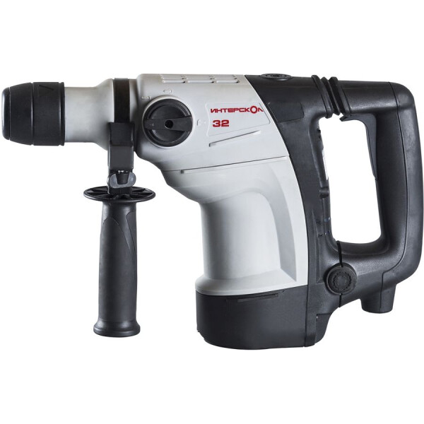 Перфоратор ИНТЕРСКОЛ П-32/1000Э станет отличным помощником в бурении и сверлении благодаря своей мощности в 1020 Вт и большому количеству оборотов — 300-720 об/мин. В нем есть как функция бурения с силой 6 Дж, так и сверления. Частота удара перфоратора от 1950 до 4100 ударов в минуту. Вес — 5,8 кг. В нем присутствует также ограничитель глубины сверления и длинная удобная рукоятка, есть предохранитель на муфту.