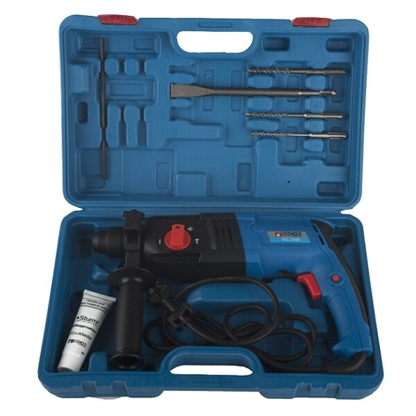 Перфоратор предназначен для безударного и ударного сверления отверстий в различных материалах (при использовании соответствующих сверл и буров), а также для работы в режиме долота (при установке соответствующего инструмента). Уверенное ударное сверление в бетоне и кирпичной кладке, долбление, сверление и заворачивание, использование в качестве миксера. А также легко справляется с демонтажными работами, с штроблением под кабельную разводку или снятие старой керамической плитки. Удобное переключение реверса не выпуская инструмент из рук для сохранения темпа работ в прямом и обратном направлении вращения повышает производительность труда. Быстрая переустановка боковой рукоятки одной рукой и ограничение сверления до необходимой глубины повышает комфорт и качество работ. Предохранительная муфта разъединяет редуктор и мотор при заклинивании оснастки для защиты пользователя.