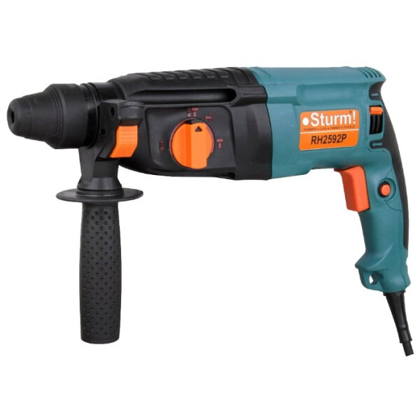 Перфоратор STURM RH2592P используется как для сверления отверстий, так и снятия старых настенных покрытий (штукатурка, плитка). Электродвигатель позволяет сверлить отверстия в бетоне диаметром до 26 мм. Предусмотрена электронная регулировка числа оборотов для удобной работы с материалами разной твердости. Функция реверса облегчает извлечение заклинившего в материале сверла. Имеется клавиша блокировки пуска, что уменьшает нагрузку на пальцы при длительной работе с инструментом.