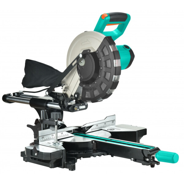 Инструмент оснащен увеличенным пильным диском, встроенным протяжным механизмом, винтовым зажимом для прочной фиксации заготовок и предотвращающие их опрокидывание выдвижными боковыми суппортами. Благодаря большому поворотному столу, фиксирующемуся в любом положении, наличию удобной регулировки с прецизионными шкалами для точной настройки нужного наклона пилу можно уверенно выставить в рабочую позицию на предварительно заданные параметры косых пропилов.