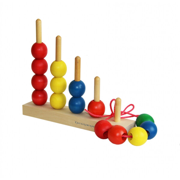 Игрушка-пирамидка «Радуга» состоит из деревянной платформы, на которой расположены пять стержней. В процессе игры малыш должен разместить все шарики по цветам, тем самым сложить их в нарядную, яркую лесенку. Правил в игре нет, поэтому шарики можно смешивать между собой, перебирать и путать по цветам. Занятие развивает мелкую моторику рук, координацию движений, умение различать цвета, первоначальные счетные навыки.