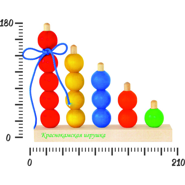 Помимо этого, в комплект набора входит обычная шнуровка, на которую также предстоит нанизывать деревянные шарики, что сделает игровой процесс более увлекательным. Все детали пирамидки «Радуга» тщательно отшлифованы и покрыты безопасными акриловыми красками, они гладкие и приятные на ощупь, не оставляют заноз. Элементы изготовлены из натурального дерева твердых пород, они не могут разбиться на мелкие осколки или раскрошиться, а потому не представляют опасности для ребенка. Размер игрушки 16.5х21х4 см.