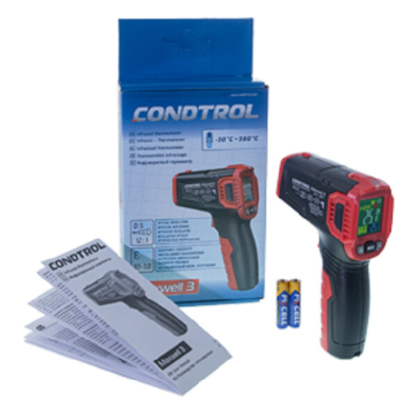CONDTROL Maxwell 3 – инфракрасный пирометр, предназначенный для мониторинга тепловых потерь, поиска мостиков холода, зон утечки тепла, засоров в системе теплоснабжения, перегрева подвижных деталей в автомобилях и механизмах. Диапазон измерений температуры поверхности от – 30 °С до 380°С. Пирометр CONDTROL Maxwell 3 отличается простотой в использовании, компактными размерами и небольшим весом. Достаточно навести лазерный указатель на объект, нажать на триггер, и результат появится на экране.