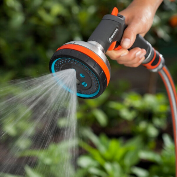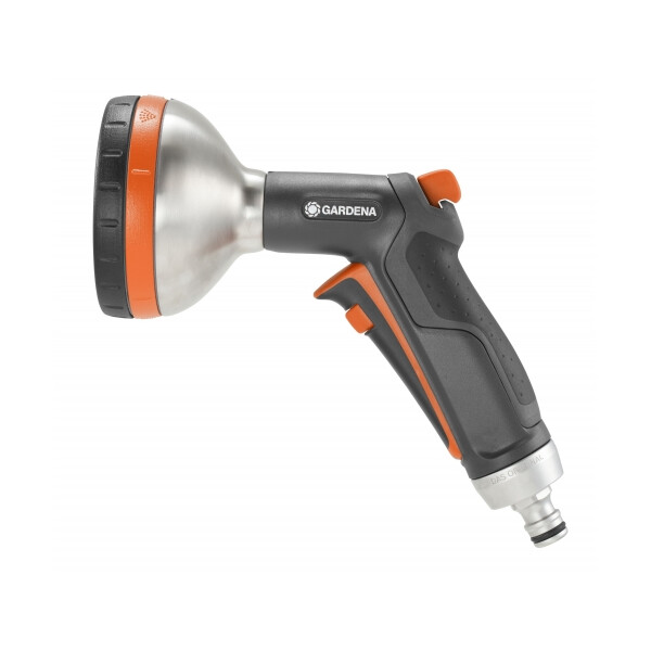 Многофункциональный пистолет-распылитель для полива Gardena Premium 18317-20.000.00 применяется для орошения садовых растений. Имеет пять рабочих режимов: жесткая струя для удаления грязи, аэрированная струя для бережного полива, душ для полива больших площадей, мелкодисперсный полив и плоская струя. Конструкция распылителя выполнена из металла и пластика, благодаря чему отличается прочностью и устойчивостью к механическим повреждениям. Наличие интегрированной защиты от мороза позволяет использовать инструмент длительное время. |