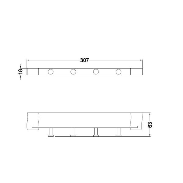 Конструкция данного изделия проста и работает отлично – планка с четырьмя крючками монтируется на стену скрытым способом на двух опорах. Вся планка монолитная, представляет собой единую деталь без соединительных швов и элементов, покрыта защитным слоем хрома, который одновременно улучшает тактильные ощущения и внешний вид.