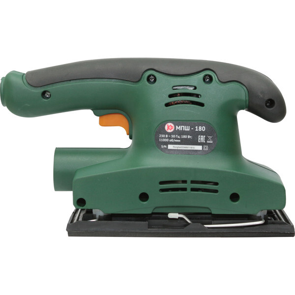 Ручная плоскошлифовальная машина Калибр МПШ-180, предназначена для сухой шлифовки (полировки) ровных поверхностей из различных материалов: древесины, металла, пластмассы, камня и других. Рабочим инструментом шлифмашины являются листы наждачной бумаги различной степени зернистости. Листы крепятся зажимами на плоской подошве из мелкопористого полимера. Плоскошлифовальная машина имеет пылеотвод, к которому можно подключить пылесос для эффективного удаления пыли.