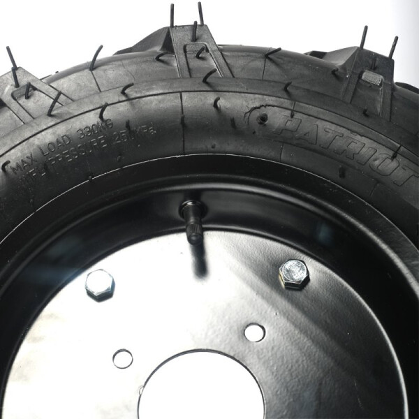 Колесо пневматическое с диском P5.00-10D-1 PATRIOT 490001227 является запасным для культиваторов, мотоблоков, тележек и применяется для обеспечения лучшей мобильности и маневренности тяжелых агрегатов. Для крепления предназначены 4 отверстия.